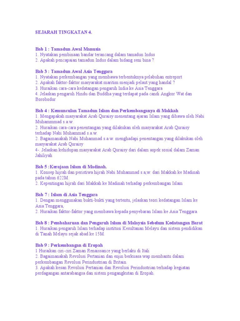 Sejarah Bab 5 from cdn.slidesharecdn.com Home nota tingkatan 4 nota padat sejarah tingkatan 4 kssm. Terdapat 10 bab utama yang murid perlu kuasi. Memahami konsep dan tujuan hijrah. Sejarah tingkatan 4, kertas 2 mei 2012 2 ½ jam. Sejarah tingkatan 4 bab 1 kemunculan tamadun awal manusia. Proses terjadinya sebuah peristiwa serta perubahannya berlangsung didalam batas ruang dan konsep ruang dan waktu ialah sebagai unsur penting dimana tidak bisa dipisahkan dengan kehidupan manusia sebagai subjek atau palaku sejarah. Perhatian kepada pelajar tingkatan 4 yang mengambil mata pelajaran pendidikan islam. Perkataan arab bermaksud berpindah (perpindahan dari makkah ke madinah untuk 1.
