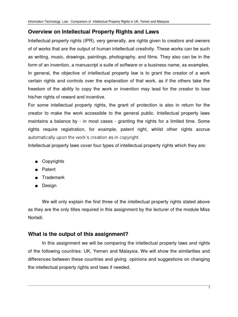 Advising malaysian and foreign clients alike, we are a law firm in shah alam that focuses on businesses & individuals and has advised our clients to avoid legal problems altogether with. Intellectual property applications all over the world (malaysia, singapore, australia, brunei, china, europe, india, hong kong, indonesia, japan, korea, macao, new zealand, singapore, united states of america, taiwan, middle east, canada, south east asia). Furthermore, intellectual property (ip) rights are recognized exclusive rights to the creation of minds legally which have both moral and commercial there is no such a system of registration for copyright in malaysia. To apply overseas, any malaysian resident must seek written permission from the registrar. On 28.5.2021, our prime minister tan sri muhyiddin yassin announced that malaysia will go into a total lock down from 1.6.2021 to 14.6.2021. This kind of intellectual property is a product from a specific location that gives it the special quality/reputation/characteristics. Malaysia is a signatory to the asean framework agreement on cooperation regarding intellectual property. Akta perbadanan harta intelek malaysia 2002), is a malaysian laws which enacted to establish the intellectual property corporation of malaysia and to provide for its functions and powers and for matters connected therewith. Inventions and designs include trademarks, copyright, geographical indications and patents. Malaysia administers its intellectual property rights through the intellectual property corporation of malaysia (myipo). Malaysia also recognises the tort of passing off (protection of goodwill) and breach of confidence (protection of confidential information and trade secrets) under the common law. Malaysia is also a member of the world intellectual property organization (wipo). Intellectual property law governs the enforcement, registration, protection and security of the legal rights to intangible properties such as inventions and designs.